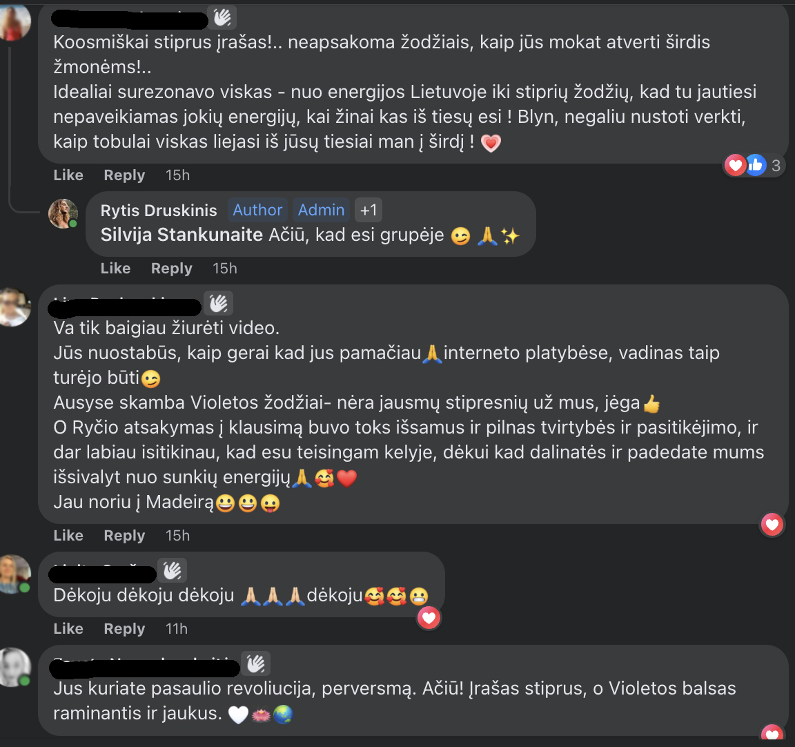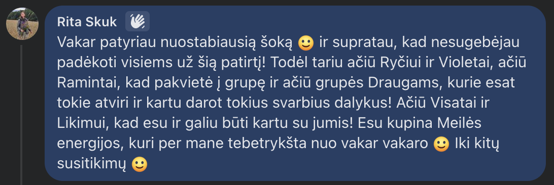 Smagu, kad mus palaikai ir tiki tuo, ką darome! Lauksim tavęs grupėje!
